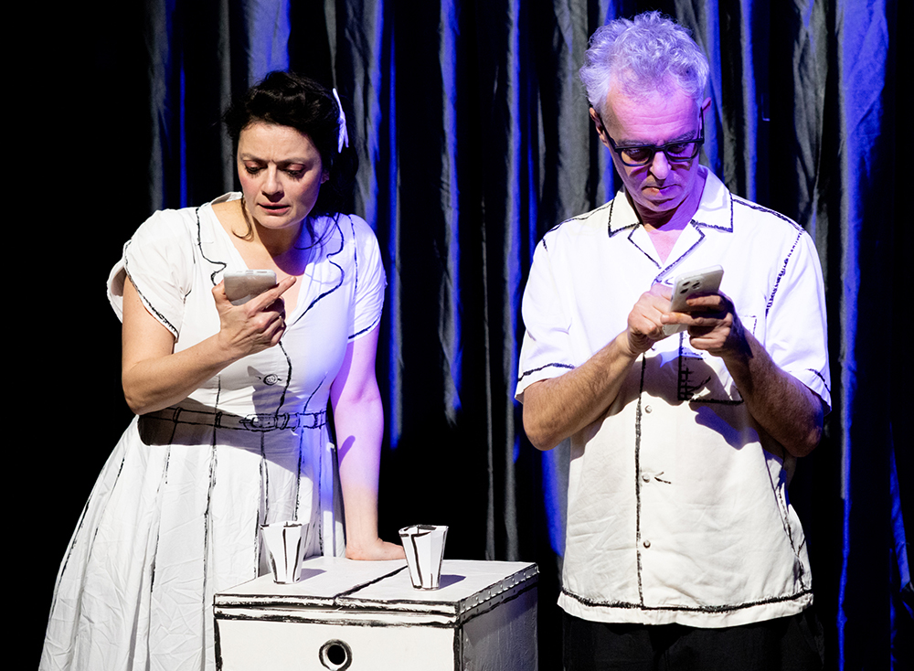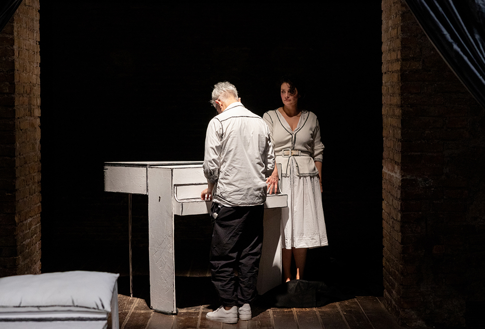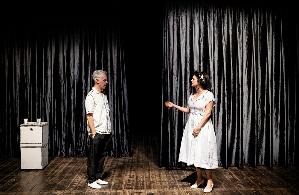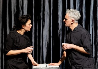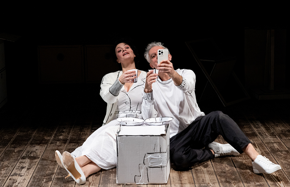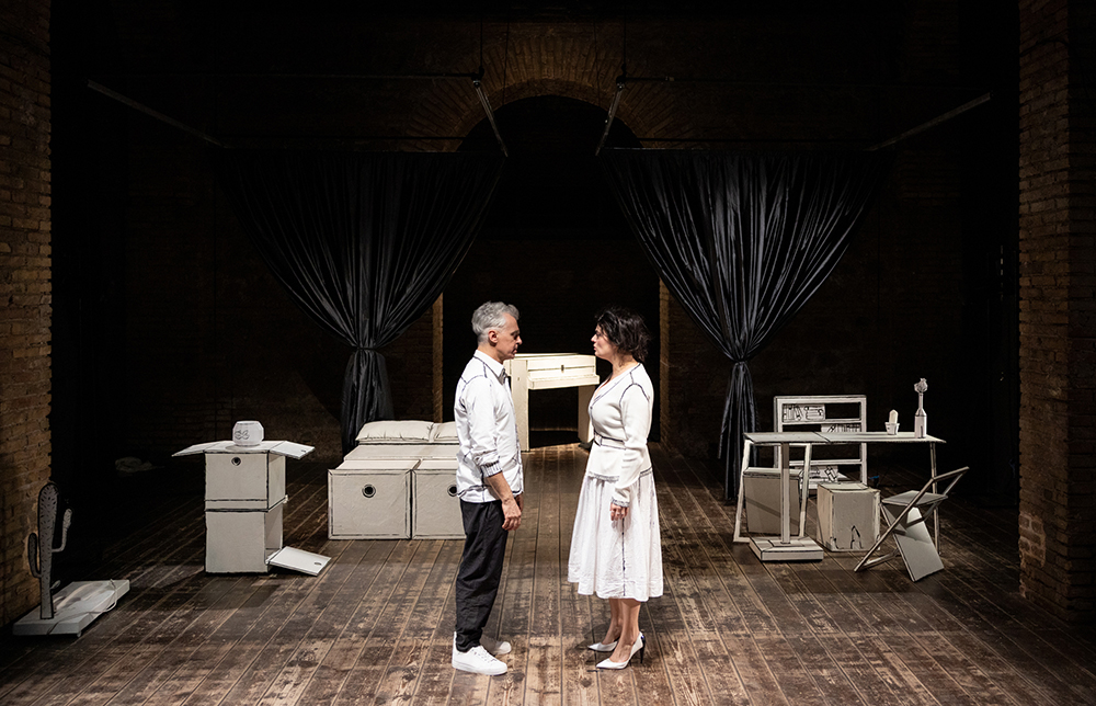 Una storia d’amore con due voci narranti. Inizia con un caffè, come quasi tutte le storie. Finisce con un totale. In scena, lui e lei.